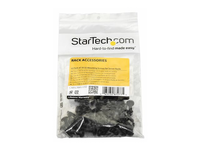 This 50-pack of 10-32 server-rack screws is perfect for installing rack-mount hardware, such as your server, network or audio/video equipment. The bulk package of rack-mount screws ensures that you have enough screws available for all of your installations, when you need them.